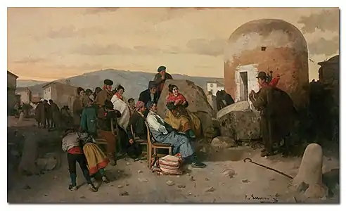 In 1869, he received a stipend from Manuel Antonio, Marqués de Bedmar, to complete his studies in Italy.[1] Later, he toured much of Spain and participated in the National Exposition of Fine Arts,[2] where he sold a painting to King Amedeo I. All together, he received four medals at various expositions from 1876 to 1887. For many years, he continued to work as an itinerant artist.