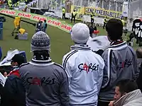 On 28 May 2008, Çarşı concluded its presence by a farewell letter written by Alen Markaryan, arguably the main cheerleader (Turkish: Amigo).[15] During the Press Gala of Turkish: Asi Ruh documentary, Markaryan declared that they decided to disband the group after discussions which questioned the group's position as coming before Beşiktaş J.K. itself for the supporters.[16] According to the newspapers, some subsequent reactions came up even in the gala.[17] Discussions not yet finished. In internet forums, some users cite that they are proponents of the decision, but are also showing the tendency to keep the group's ideology and legacy. On the other hand, there are also users who believe that Çarşı cannot be ended like a defunct organization, as its roots are deeper and more philosophical than those of a typical fan group.