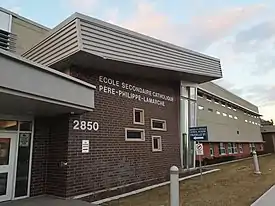 École secondaire catholique Père-Philippe-Lamarche (transl. Father Père-Philippe-Lamarche Catholic Secondary School, commonly shortened to ESC Père-Philippe-Lamarche or ESCPPL), is a public separate French first language secondary school operated by the Conseil scolaire catholique MonAvenir. The school is located on Eglinton Avenue, in the Toronto neighbourhood of Eglinton East. It is the first public francophone separate secondary school situated in Scarborough.