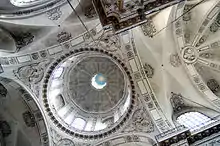 Its design included traditional French elements as well as others inspired by Italy. In effect, as André Chastel put it, "the Jesuit order, even while recommending certain aspects, was attentive to local traditions."[2] Also, it can easily be compared to the Gesu in Rome, though it is longer and wider than that church. Its plan is a compromise between the Gesu's single nave flanked by side chapels and the traditional French cruciform plan, as is to be seen in its long transepts. The tall windows in these prominent transepts and the short eastern apse allow in large amounts of light, and the dome under the crossing also recalls Italian architecture of a slightly earlier period, such as that of Carlo Maderno. In contrast, the high proportions (the dome is 55 metres high) are more comparable to French Gothic architecture.