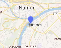 The Élysette faces the Parliament of Wallonia. This one is on the left shore of the river, next to the Grognon (confluence between Meuse and Sambre rivers).