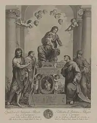 - The Virgin enthroned, with SS. Francis, John, and Catharine; after Correggio.