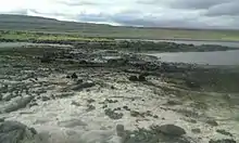 On the peninsula of Reykjanes, there are hot springs and hydrothermal alteration.