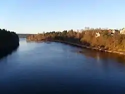 Österdalälven (literally East Dal River) is a 300-kilometre (190 mi) long river in Sweden that flows southeast through Dalarna. Its sources are Storån, Grövlan and Sörälven and the end point is Djurås, in the municipality of Gagnef, where it connects with Västerdalälven to form Dalälven. Österdalälven flows through the Trängslet Dam and Siljan.
