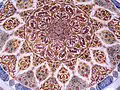 The two blue and turquoise underglaze-painted tile panels in the tympana of the windows were probably produced by the same group of tilemakers who had decorated the Yeşil Mosque (1419–21) in Bursa where the tiles are signed as "the work of the masters of Tabriz" (ʿamal-i ustadan-i Tabriz). The running pattern of the Chinese influenced floral border tiles is similar to those in the small Muradiye Mosque in Edirne.[6][7]