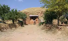 South of the village is an ancient settlement of Hellenistic and Roman date (based on archaeological finds). In this area, a stele was found in 1973, which shows Antiochus I of Commagene and Apollo shaking hands. Another find was a funerary altar with a relief carving of a griffin on a wheel and an inscription in which the genealogy of a noble Commagenian family is described. The altar is now on display in the Adıyaman Archaeological Museum. Near the settlement are the two Tumuli of Sofraz, which contain Roman chamber tombs.[2]