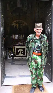 Đorđe Mihailović (Serbian Cyrillic: Ђорђе Михаиловић; Thessaloniki, 1 May 1928) is a keeper of Serbian Military Cemetery at Zeitenlik, in Thessaloniki.[2] For more than half a century Đorđe Mihailović welcomes and sends off the descendants of Serbian soldiers who died in Salonika front during the First World War. He shows them where the bones of their ancestors are stored.