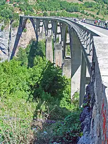 The Đurđevića Tara Bridge (Cyrillic: Мост на Ђурђевића Тари, pronounced [dʑǔːrdʑɛv̞iːtɕaː târa]) is a concrete arch bridge over the Tara River in northern Montenegro.[1] It is located at the crossroads between the municipalities of Mojkovac, Pljevlja and Žabljak. The exact location of the bridge is between the villages of Budečevica and Trešnjica.[2]