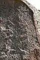 The relief is about 3.25 x 2 metres and was engraved on the northwest side of a large boulder, on a slightly convex, but conveniently flat surface. It is now very worn. It consists of three sections. The left section features a human figure, moving to the right, perhaps the creator of the monument, holding a spear in his left hand and a bow in his left (the string is only roughly indicated). On his belt there are knobs and some traces of a sword. He wears a round cap and there are traces also of a horn and pointed shoes. Luwian hieroglyphs were engraved in front of his head, which name him as a son of the king. His name is given as Kuwalanamuwa. A prince of this name is also known from the Hanyeri and Manisa reliefs. Whether they are all the same person is not certain, though certainly possible.