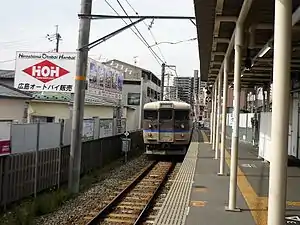 Ōmachi Station (大町駅, Ōmachi-eki) is a station operated by the West Japan Railway Company (JR West) and Hiroshima Rapid Transit. It is located in Ōmachi-higashi, Asaminami-ku, Hiroshima, Hiroshima Prefecture, Japan. The Kabe Line and the Astram Line stop at this station, though they are situated in separate station buildings. An overpass connects the two buildings together.
