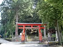 The Haiden of the shrine dates from the Muromachi period and is registered as an Important Cultural Property[1]