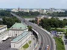 The bridge is an integral portion of the Warsaw W-Z Route main thoroughfare that, from 22 July, 1949, joined Praga in the east (one of Warsaw's least destroyed districts during World War II) with the city center, going through Muranów and out to Wola in the west.
