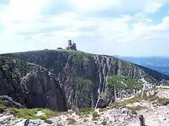 The walls of both cirques are about 100 metres (330 ft) high and contain small tarn lakes.[1] They were formed during the last phase of the glacial period and consist predominantly of granite. However, in two exposed places basalt was found (apparently of volcanic origin), which is quite rare in this part of Central Europe.[1] Some rare species of arctic and alpine plants appear in the cold and dark parts of the cirques:[2] Pulsatilla alpina, Gentiana asclepiadea, Aconitum napellus,[3] and the only place in the Sudetes where Micranthes nivalis appears.[1] At the top of the larger cirque, at the Łabski Szczyt, there is a radio and television tower.