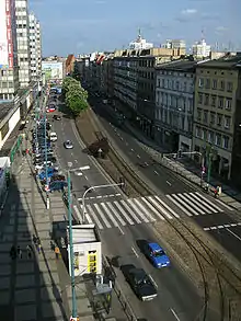 Trams run along most of the length of the street, from Rondo Kaponiera to Aleje Karola Marcinkowskiego, in both directions at the western end, and eastwards only east of Gwarna.
