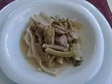Şevketibostan yemeği (Turkish: Şevketibostan yemeği) is a dish common to the Turkish people. Ingredients include Şevketibostan (Cnicus benedictus), lamb chunks, onion, juice of half a lemon, flour, butter, and salt.[1][2][3][4]