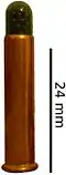 Because many of the rifles that are chambered for the .22 WMR have tubular magazines, the bullet noses generally are flat or at least blunt to allow smooth feeding and reduce damage to the bullet.[30] Although a pointed bullet in a rimfire cartridge will not contact the primer of the round in front of it (which is a hazard with centerfire cartridges in a tubular magazine), the manufacturer's stamp is in the middle of the base of a rimfire cartridge, and this may interfere with pointed metal bullets in a tube. However, Remington, CCI, and Hornady now produce bullet designs with 30 or 33-grain (2.1 g) polymer plastic ballistic tips that reduce the hazards of pointed ammunition in tubular magazines.[31][32][33]