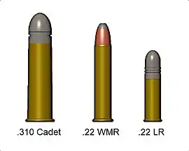 The .310 Cadet, also known as the .310 Greener, or the .310 Martini, is a centerfire rifle cartridge, introduced in 1900 by W.W. Greener as a target round for the Martini Cadet rifle.[2] Firing a 120 grain heeled lead projectile at 1350 ft/s the round is similar in performance to the .32-20 Winchester and some rifles may chamber both rounds with some accuracy.[3] The full metal jacketed round was used in cadet rifles in Australia and New Zealand after early 20th-century Defence Acts. In New Zealand, after the start of the Boer War, a cadet corps had been started; by 1901 it was recommended that membership be compulsory. 500 Westley-Richards miniature Martini–Henry rifles were available by October 1902 (Auckland Star), and 5000 by April 1903 (Star). Such rifles gained popularity in Australia, New Zealand and the United States when thousands of Martini Cadet rifles were sold by the Australian government after World War II. A shorter version used as a humane killer was used in pistols. Known as the .310 cattle killer, invented by WW Greener, it was shorter in that a .310 cadet could not be accidentally chambered into the humane killer pistol.