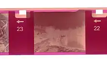 Although the format is commonly associated with print film, Kodak also produced Kodachrome 64 slide film in 110 cartridges until 1982.[7][8] In 2012 Lomography re-introduced slide film for 110 with their Peacock 200 ASA model.[3] However, since not all 110 cameras have a settable ASA dial (low or high, depending on presence of a notch in the cassette), a neutral-density filter has to be used over the lens or the exposure compensation dial has to be used where available. Otherwise, over-exposure by a factor of x2 will result, leading to over-exposed images.