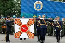 The brigade's 500th Separate Airborne Battalion was disbanded in 2006.[4] During the Vostok-2010 exercises, the brigade showed military skill, for which it was awarded the pennant "for military valor" of the Ministry of Defence. During the same year, the brigade became part of the 36th Army. The brigade was presented with a new flag by Dmitry Medvedev on 24 August 2011. The brigade became part of the Russian Airborne Troops in December 2013.[5] On 25 March 2015, the brigade was assigned the title 'Guards'.[1][6]