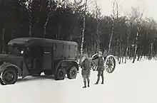 In March 1931 exercises were held near Breda with a battery of 4 12 cm Lang staal which had been reassigned from the siege artillery to the field army.[25] Later in 1931, the regiment of unmounted artillery from Gorinchem held an exercise near Breda. The regiment was embarked in Gorinchem, and disembarked in Oosterhout. In Oosterhout horses from the 3rd Artillery regiment from Breda took the guns in tow.[35]