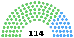 All 114 seats in the Norwegian Parliament 57 seats were needed for a majority | |||||||||||||||||||||||||