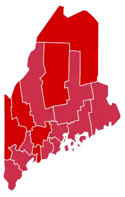 | Aroostook | 4,816 | 74.41% | 1,383 | 21.37% | 42 | 0.65% | 231 | 3.57% | 3,433 | 53.04% | 6,472 |