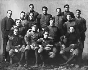 Three Harvard players were consensus first-team selections on the 1898 All-American football team: quarterback Charles Dudley Daly; halfback Benjamin Dibblee; and end John Hallowell.[3] Other notable players included fullback Bill Reid; tackles Percy Haughton and Malcolm Donald; guard Walter Boal; halfback Leicester Warren; center Percy Malcolm Jaffrey; and end Francis Douglas Cochran. Haughton and Daly were later inducted into the College Football Hall of Fame.[4][5]