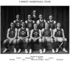 The 1911–12 season was Thomas E. Thompson's second year as head coach of the Illinois Fighting Illini men's basketball team. Under Thompson's guidance the Illini experienced a perfect non-conference season while at the same time having a less than perfect conference record.[1] Overall the team played to an eight win, eight loss record, however; all of the season's losses were within Western Conference play. During conference play the team won six times and placed fifth overall. The starting lineup for the team included; Albert L. Hall, Homer W. Dahringer and R. P. Gates as forwards, H. T. Leo as the center, with James G. White and captain William H. Woolston at the guard positions.[2]