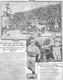 - "My City, Oakland, Can Boast of the Greatest Ball Team on the Pacific Coast: After a Long, Hard, Grim Struggle Our Hopes and Prides Win the 1912 Pennant". Oakland Tribune. October 28, 1912. p. 10 – via Newspapers.com.