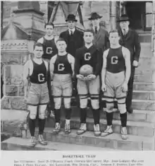 On-campus Ryan Gymnasium, where the Hoyas had played their home games since the 1914-15 season, had no seating, accommodating fans on a standing-room only-basis on an indoor track above the court. This precluded the accommodation of significant crowds, providing the self-sustaining Basketball Association with little revenue with which to fund the team's travel expenses and averaged no more than three road games a year from the 1918-19 season through the 1926-27 season in order to keep travel to a minimum.[2][3] The 1919-20 team's only road trip outside of Washington was to New York City and Connecticut at the end of the season.