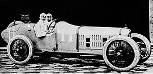 Émile Mathis was the sole other French entrant with a car of his own manufacture. Still so close to war's end, German teams were not invited.[15] The Anglo-French STD (Sunbeam) company had seven cars entered, however ten days out from the race Louis Coatalen, racing director realised the cars would not be prepared and withdrew the team. When the drivers protested he relented to let anyone who could be ready to race. In the event four started – those for René Thomas, André Boillot and Brooklands regulars Kenelm Lee Guinness and Henry Segrave - while another STD entrant, alcohol heir André Dubonnet, switched to Duesenberg to replace their injured driver, Inghilbert.[20][21] FIAT had entered three of its new 802 models,[22] including cars for Bordino, and Sivocci (formerly at Alfa Romeo). However industrial unrest in Italy prevented them being ready and delivered in time.[20][16] When entries closed the list was quite short. Fred Duesenberg had been keen to send four cars across but could not afford the shipping costs. When French-American spark-plug manufacturer Albert Champion provided $60000 of sponsorship, their entries were gladly received.[20][12] The works drivers of Murphy, Guyot and Boyer were supplemented by French driver Louis Inghilbert.