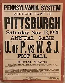 - "Presidents Drill on Pitt Defense". The Pittsburgh Press. November 6, 1921. p. Sporting 3 – via Newspapers.com.
