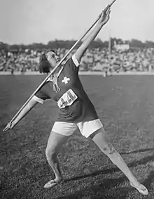The pentathlon event was the first[15] recorded Women's pentathlon, the 5 events were 60 metres, 300 metres, high jump, javelin, and shot put (the throwing events were two-hand[15]). Regular women's pentathlon was introduced at the 1934 Women's World Games in London