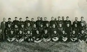 The starting lineup was Al Clemens (left end), Bill Buckler (left tackle), Bruce Jones (left guard), Clyde Propst (center), Pete Camp (right guard), Jack Langhorne (right tackle), Tom Newton (right end), Grant Gillis (quarterback), Allen McCartee (left halfback), William Baty (right halfback), Pooley Hubert (fullback).[35]
