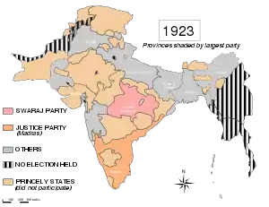 General elections were held in British India in November 1923 for both the Central Legislative Assembly and Provincial Assemblies. The Central Legislative Assembly had 145 seats, of which 105 were elected by the public.[1][2]