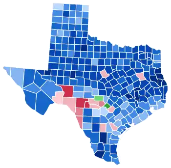 | Nueces[lower-alpha 3] | 3,214 | 65.89% | 1,537 | 31.51% | 127 | 2.60% | 1,677 | 34.38% | 4,878 |