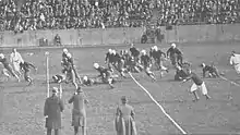 With the team back in school, practice was held in the stadium so the 75 freshmen team aspirants could use the practice field. At the stadium, the day before the first game against Allegheny College, Coach Sutherland allowed the student body to watch practice for the first time.[20]