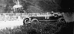 The Targa Florio, in April, was the opening round of the new Italian Championship. Peugeot and Bugatti returned to renew their rivalry. This year Peugeot only had a single 174 S 4-litre sports car for André Boillot. Former Targa winner Bartolomeo Costantini was now the Bugatti team manager and brought four cars. Caberto Conelli had a 1.5-litre Type 37A, while the other drivers, veteran Jules Goux and Ferdinando Minoia, Emilio Materassi and liqueur-heir André Dubonnet, had the new 2-litre Type 35C. They were supported by a squadron of seven privateers making up half the field. In the absence of Fiat and Alfa Romeo, Italian honour would be upheld by Maserati. Alfieri Maserati drove the new Tipo 26B himself, while his brother Ernesto and Aymo Maggi had older Tipo26s. As the initial car was a non-starter, the first car left at 8:04 am. At the beginning Dubonnet and Boillot duelled for the lead. Conelli was first to arrive back at the line, but on elapsed time, Minoia had a five-second lead over Dubonnet with Materassi and female Czech driver Eliška Junková less than a minute behind. But going into the second lap, the order changed significantly. A third of the way around, Junková slid off the road when the steering rod broke.[56] Soon after, Minoia retired with a broken universal joint and Dubonnet was having engine problems. Materassi set a new lap record opening a 6-minute lead over Maserati (who pitted with a flat tyre) and Conelli. Three Bugattis were fighting with the three Maseratis with Boillot's Peugeot in seventh. Rain started falling on the fourth lap making the roads treacherous, and causing several drivers to go off the road. But Materassi kept control throughout with he and Conelli getting a comfortable 1-2 victory for Bugatti, the third straight win for the team. Alfieri Maserati was twenty minutes back with Boillot in fourth, over fifty minutes behind the winner. Only six of the 22 starters were classified at the finish.[57][58][36] Two weeks later, another race - the Coppa Messina - was held on the mountain roads of Sicily. Materassi crashed his Bugatti in practice but bought one of the works Maseratis to race instead. A Bugatti won again, but Alfieri Maserati was severely injured when he crashed, blinded by dust, overtaking two other cars. Several major newspapers mistakenly reported his death, however he did slowly recover despite losing a kidney.[59][60]