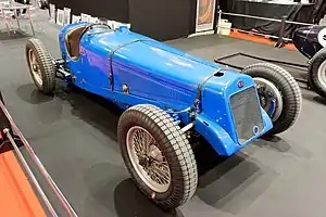 Ettore Bugatti had a winning formula with his Type 35 chassis and its variants, and changed little over the close-season aside from fitting a larger supercharger to the Type 39A grand prix car.[36] However, after the exhaust debacle of the previous year, Delage set about making fundamental changes to their car. The two superchargers replaced by a single one, while the engine block was reversed and offset from centre to move the exhaust away from the driver. The result was a greatly improved car.[41][42][43]