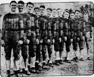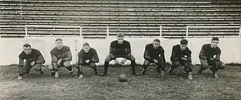 The starting lineup was: Green (left end), Norfleet (left tackle), Grandoff (left guard), Bono (center), Houser (right guard), Hicks (right tackle), Nolan (right end), Bowyer (quarterback), McEwen (left halfback), Owens (right halfback), and Sauls (fullback).[23]