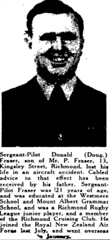 205. "Sergeant-Pilot Donald (Doug) Fraser". Auckland Star, Volume LXXIII, Issue 144. 1942-06-20. p. 6. Retrieved 2022-04-19.