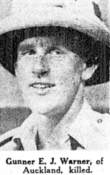 158. "Auckland Men/Killed In Action/Four Gunners included/Soldiers In Middle East". New Zealand Herald, Volume 79, Issue 24170. 1942-01-12. p. 7. Retrieved 2022-04-17.