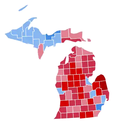 | Lapeer | 3,002 | 27.74% | 7,769 | 71.80% | 28 | 0.26% | 11 | 0.10% | 11 | 0.10% | -4,767 | -44.05% | 10,821 |