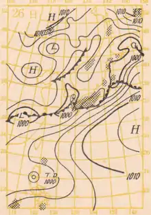 Early June the Meiyu rain front had briefly come to a standstill over north-central Kyushu, raining over the city of Fukuoka and Nagasaki at the start before latter bringing rains over Kumamoto.[1] Later the front moved south over Amami Ōshima before fluctuating between Amami Ōshima and Yakushima. Meanwhile from the south, the Pacific High in the area around the Philippines began to grow in strength and push the rain front into the Tsushima Strait. At the same time a mobile anticyclone from China began pushing the rain front back towards Yakushima. Trapped between these two competing forces the rain front became stabilized over Mount Aso around June 23. Moist, warm air from the high pressure areas stimulated the rain front while low pressure waves that would have normally passed through were instead redirected through the Tsushima Strait. Working in tandem these meteorological conditions generated the cloudbursts and prolonged rain that led to the unprecedented amount of precipitation over northern Kyushu.[2]