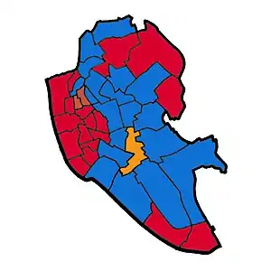![]() Map of Liverpool showing wards won (first placed party)[1] | ||
