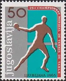 A stamp of Yugoslavia dedicated to the 1965 World Table Tennis Championships