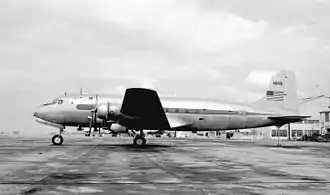 The Douglas DC-4 aircraft had been built as a C-54A Skymaster for the United States Army Air Forces in 1942.[4] It had been imported by the United Kingdom in 1960 by Starways, and Air Ferry had purchased the aircraft in 1963. The airframe had flown 42,300 hours at the time of its last maintenance check.[4]