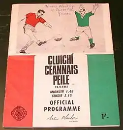 The 1967 All-Ireland Senior Football Championship final was a Gaelic football match played at Croke Park on 24 September 1967 to determine the winners of the 1967 All-Ireland Senior Football Championship, the 81st season of the All-Ireland Senior Football Championship, a tournament organised by the Gaelic Athletic Association for the champions of the four provinces of Ireland. The final was contested by Cork of Munster and Meath of Leinster, with Meath winning by 1-9 to 0-9.[1][2]