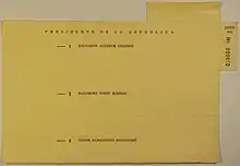 Another major factor was his campaign being staffed mostly by amateurs, which led to the wasting of resources, creating of ineffective propaganda, issues mobilizing supporters, and trouble spreading a positive message to voters.[3] US intelligence reports stated that supporters believed that Alessandri could win using his name alone and spent most of the campaign attacking Frei's reforms instead of directly promoting Alessandri.[3] In the end, he finished second, meaning that the congressional vote was between him and Allende.