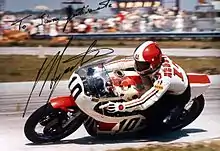 Angel Nieto claimed his fourth world title for Kreidler in the 50cc class.[1] In the 125cc division, the Morbidellis of Pileri and Bianchi dominated, finishing first and second in six of the ten events.[1] Despite Michel Rougerie scoring more points, his Harley-Davidson teammate Walter Villa would take the 250cc title because of the "best of six finishes" rule.[1] Nineteen-year-old newcomer Johnny Cecotto made an impressive debut at the season opening French Grand Prix where, he won the 250cc and 350cc races.[2] He went on to claim the 350cc title, becoming the youngest-ever FIM World Champion at the time.[1]